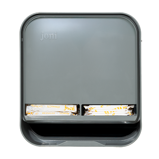 Sleek, durable, and easy to install, the Model A makes it simple to offer free period care in smaller spaces. Its open-top design means refills are quick, and the clean, modern look fits seamlessly into stalls, counters, or walls. Pair it with joni’s sustainable products to reduce waste and make menstrual care more accessible for everyone.