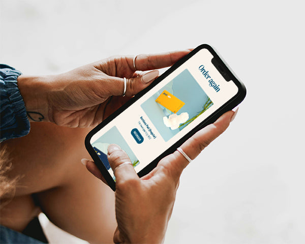 Log into your commercial account to quickly stock up on plastic-free, individual pads and tampons—no bulky boxes, no extra waste.